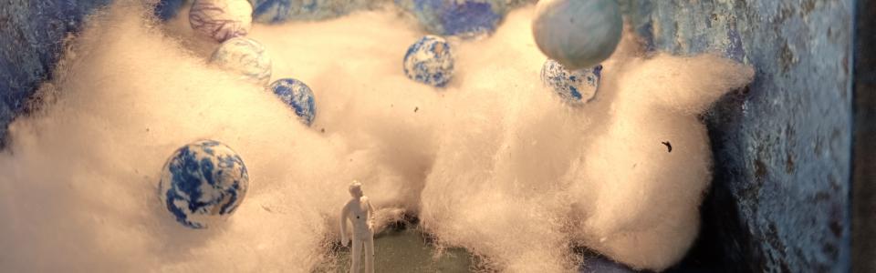 In kürzester Zeit baut jeder eine Miniaturwelt - eine andere Wirklichkeit - und reflektiert diese im Anschluss in Zeichnungen und Malereien mit unterschiedlichsten Materialien wie Pastellkreide, Kohle, Feder und Tusche, Gouache und Acryl.